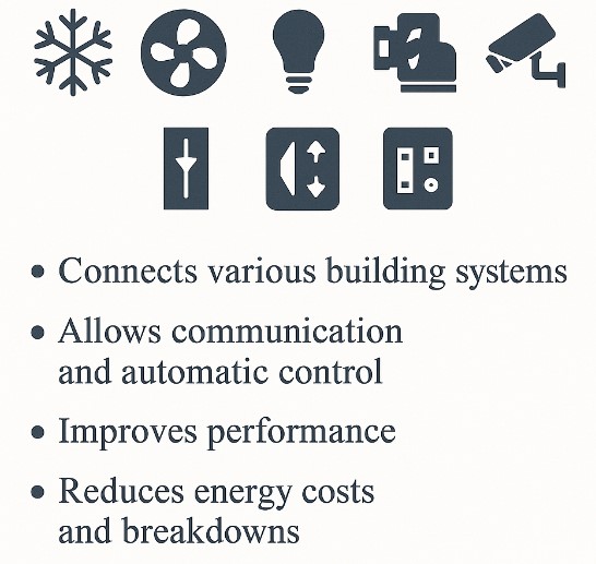 In any modern building, there are many systems running at the same time: air-conditioning, ventilation, lighting, fire alarms, elevators, water pumps, electrical panels, and security equipment. Normally, each system works on its own and managing them separately can be time-consuming and inefficient. A BMS connects all these systems so that they can communicate with each other and be controlled automatically. This improves building performance, reduces energy bills, and helps avoid breakdowns.