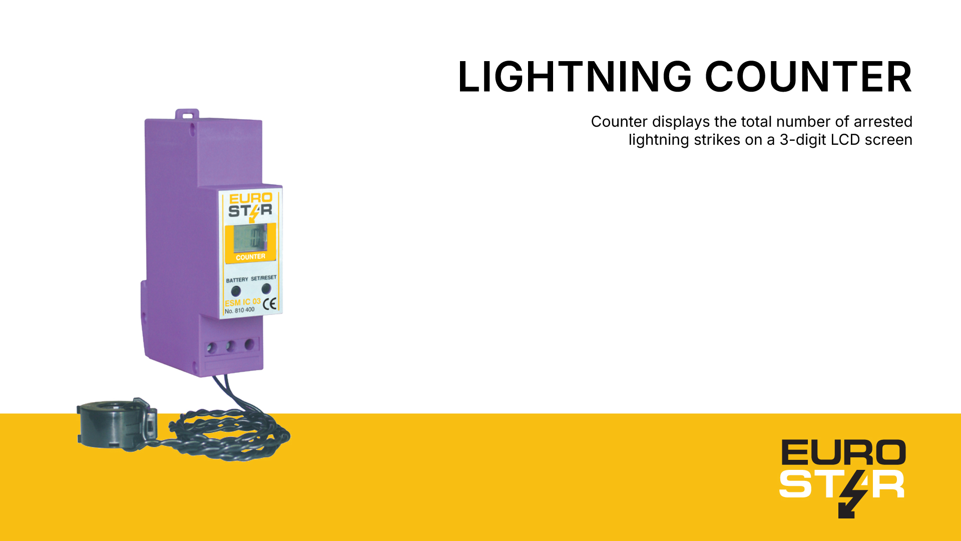 The Eurostar Flash Counter is an innovative feature that tracks the number of lightning strikes intercepted by the system. This 3-digit LCD screen display shows the total number of lightning strikes arrested by the system, and its battery-powered design ensures it works even during power outages, giving peace of mind to the property owner.