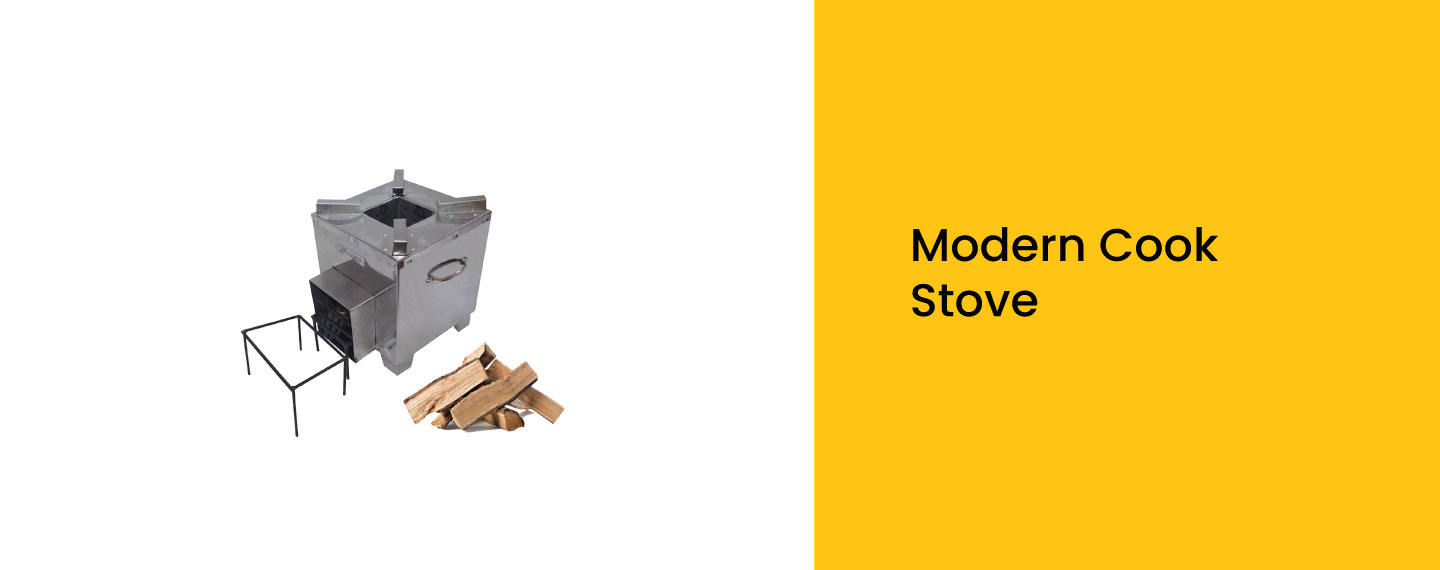 The modern cook stove offers a cleaner, efficient alternative to traditional cooking methods. It uses less biomass fuel, produces minimal smoke, and is ideal for safer, eco-friendly cooking in rural and off-grid areas.