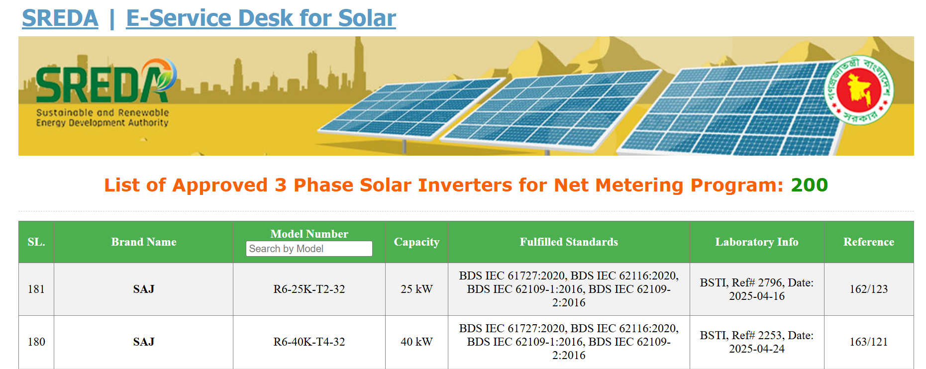 Two of several enlisted SAJ Inverters (from SREDA Website)